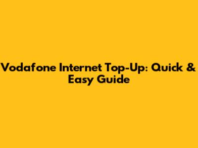 Vodafone Internet Top-Up: Quick & Easy Guide